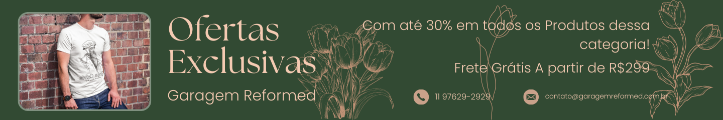 Descubra as Ofertas Exclusivas Black Reformed da Garagem Reformed, nossa maior promoção do ano! É a oportunidade perfeita para renovar sua guarda-roupa com camisetas cristãs e teológicas de alta qualidade, com descontos de até 30% ! Nesta seção especial, você encontrará as melhores ofertas da nossa Black Friday. Além de contar com frete grátis para todo o Brasil em compras acima de R$ 299 , você pode aproveitar descontos progressivos: escolha uma peça e receba 10% de desconto, leve duas peças e ganhe 20%, ou compre três e diversão de incríveis 30 % desligado! E ainda, na compra de três produtos, leve uma quarta peça totalmente grátis. Entre e confira nossas ofertas exclusivas e leves para casa produtos que representam uma fé reformada com qualidade inigualável.